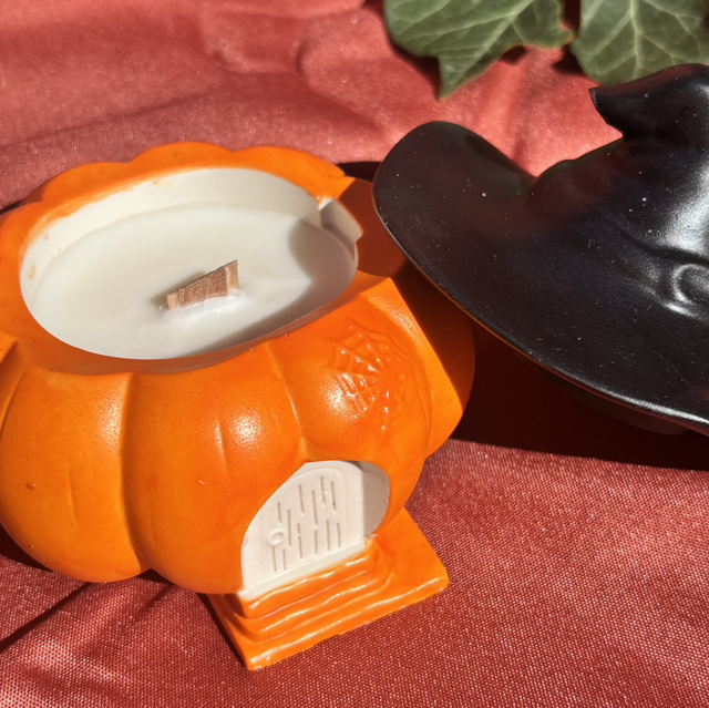 Plongez dans une ambiance chaleureuse et raffinée avec cette bougie unique en forme de citrouille. Chaque pièce est fabriquée en résine naturelle, fait main et peint à la main avec soin.